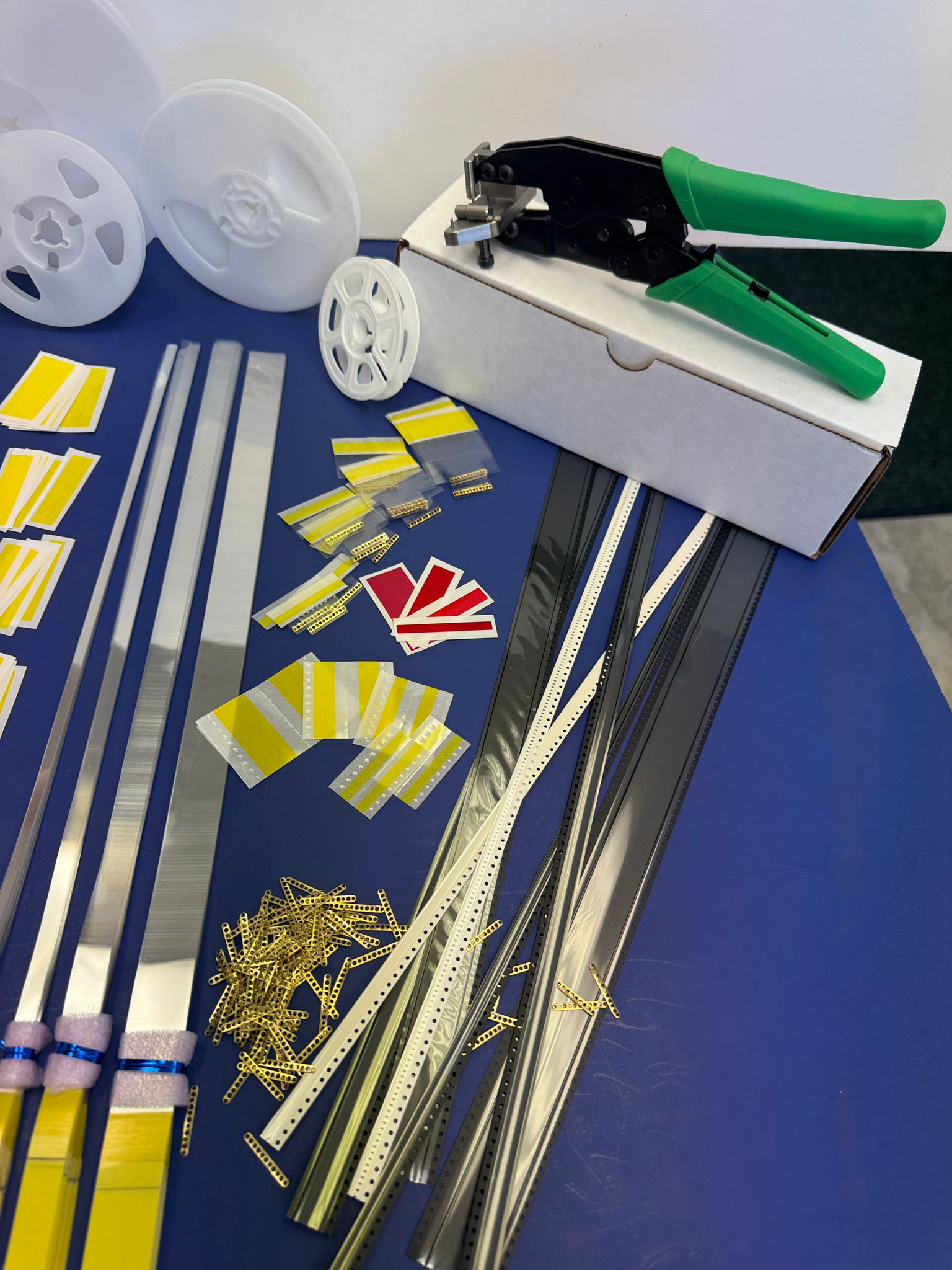 SMD Tape Connectors, 8mm, 12mm, 16mm, 24mm, 32mm, 44mm and 56mm. 50 PCS OF EACH SIZE SMD Tape Extenders for 8mm, 12mm, 16mm, 24mm, 32mm, 44mm and 56mm. 50 PCS OF EACH SIZE Splicing Shims. 50 PCS